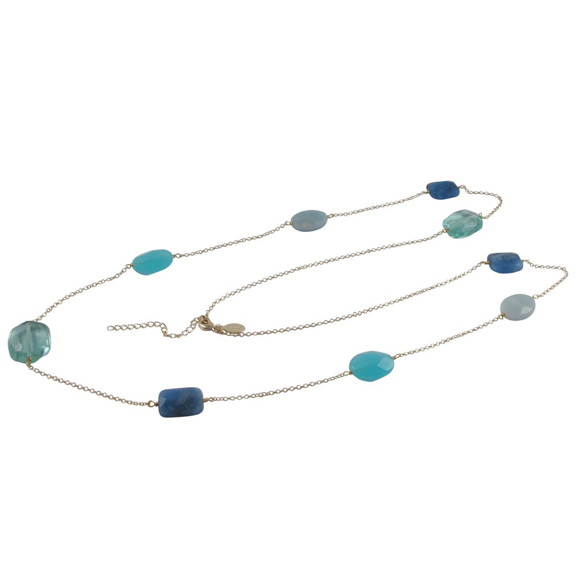 Aqua And Blue Chalcedony Combination Semi Precious Faceted Chunky Stones On Gold Plated Sterling Silver Chain- 36"
