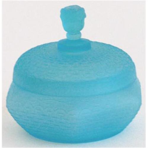 <tr><td>Title:Aqua Blue Satin Glass Rose Finial Powder Jar</td></tr>