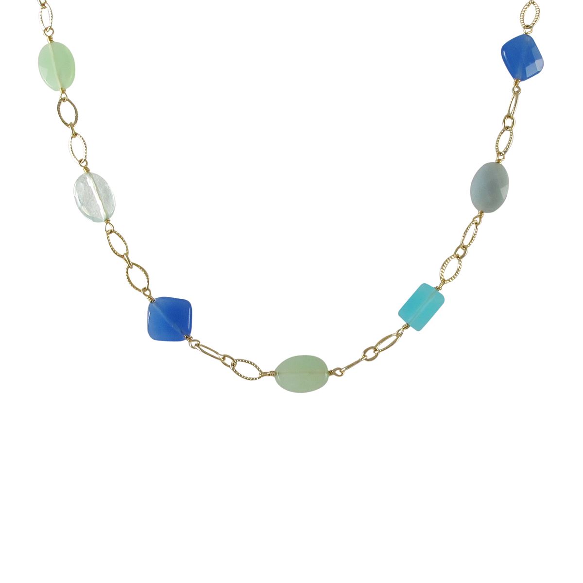 Aqua Combination Of Semi Precious Stones On Gold Tone Brass Chain- 16" 3"