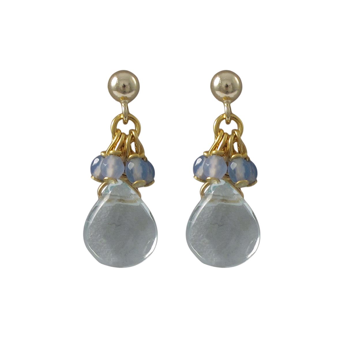 Aqua Combination Semi Precious Stones, Gold Plated Sterling Silver Post Earrings, 1"