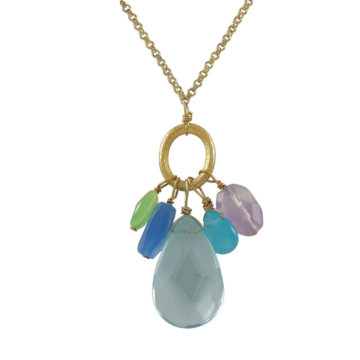 Aqua Combination Semi Precious Stones On Gold Tone Brass Chain -16" 2"