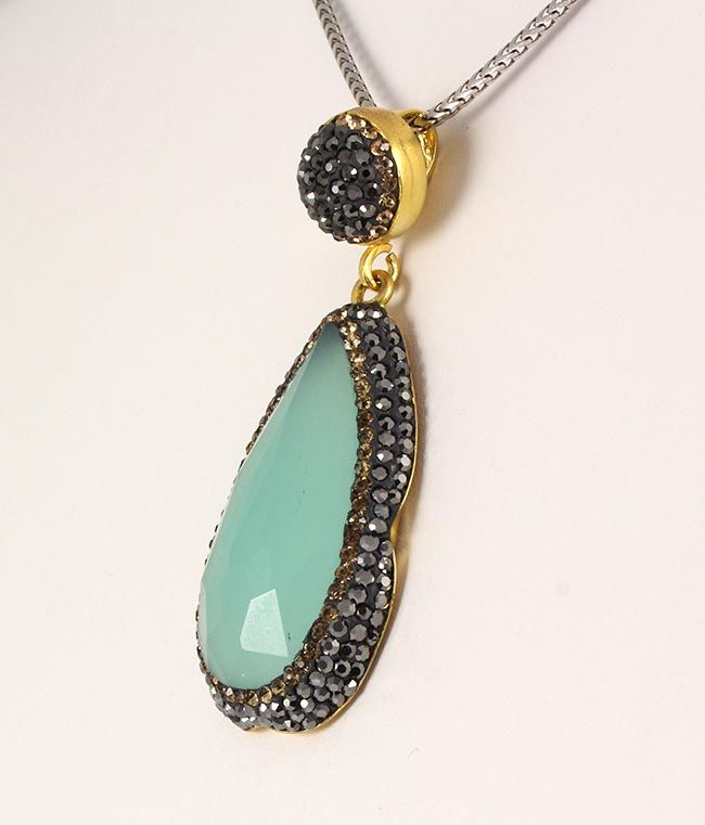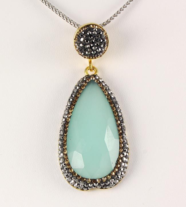 Aqua Seafoam Mint Green Natural Stone Victorian Pendant **|**|** 13.43g Aqua Seafoam Mint Green Natural Stone Drop Pendant in Victorian Design w/ CZ diamonds; 925 stamp gold plated ; MSRP: $100