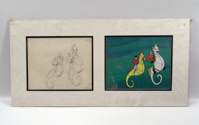 Aquaman Animation Art. (approx. 30 1/2" x 15"). Oversized. Additional shipping charges required.