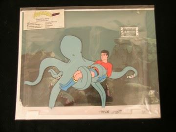 "Aquaman" Animation Cel (featuring "Aqualad" being saved by an octopus / includes original hand drawn character sketch / 1974 / Filmation Studios / 12" x 9") (NOT Matted)