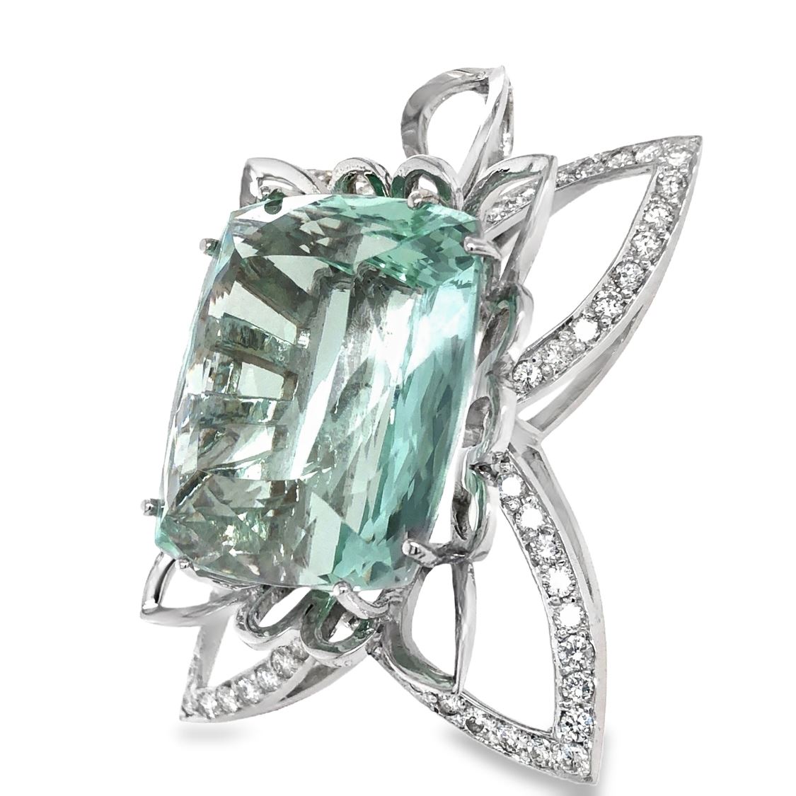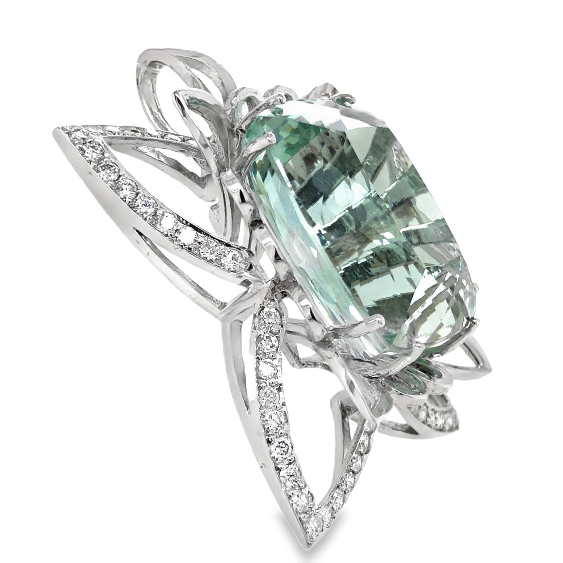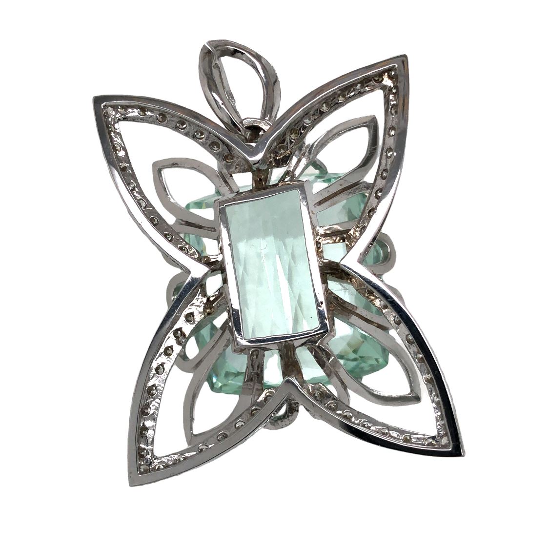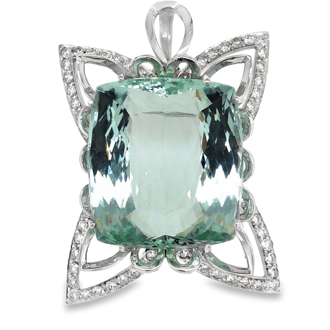 DESCRIPTION DETAIL: A large Aquamarine pendant with diamonds set in a butterfly shaped setting.