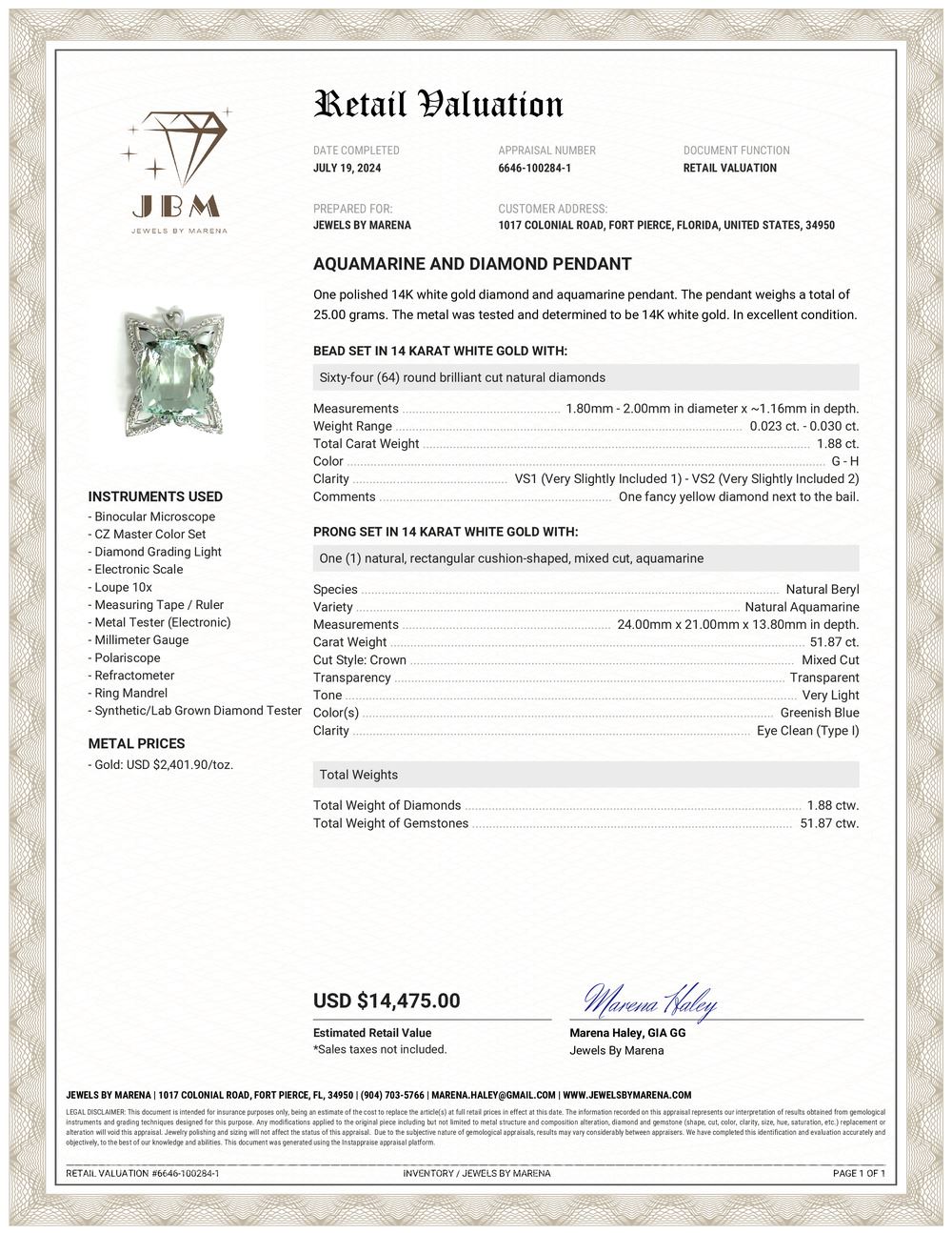 TITLE DESCRIPTION: Aquamarine & Diamond Pendant