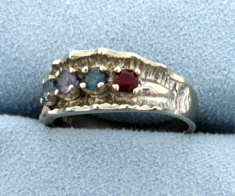 Aquamarine, Sapphire, Blue Topaz, & Ruby Ring