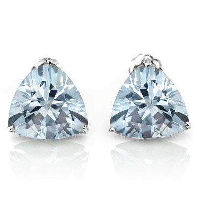 Genuine trillion cut Aquamarine gemstone stud earrings measure 5mm and are set in Platinum over Sterling Silver with friction backs. 1.0g