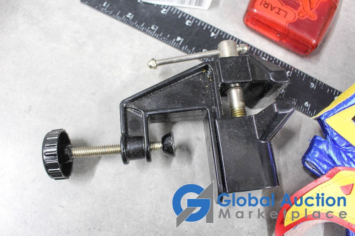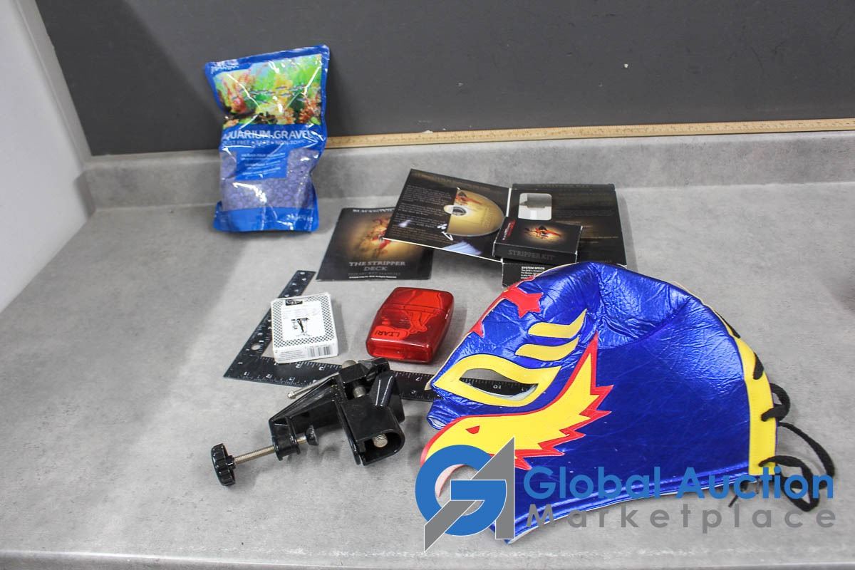 Aquarium Gravel, Clamp on Vise, Cards, Mask, etc