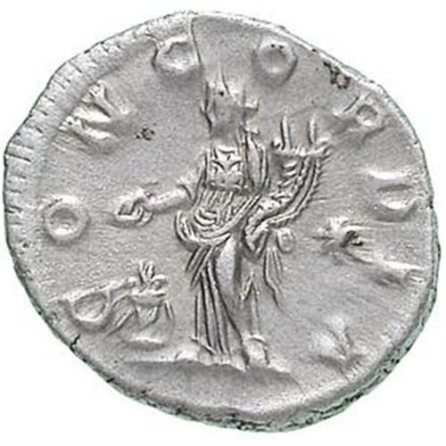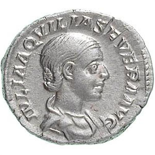 Roman Empire Coins. Aquilia Severa, seconda moglie di Elagabalus (220-222). Denarius. D/ IVLIA AQVILIA SEVERA AVG. Busto drappeggiato a destra. R/ CONCORDIA. La Concordia, stante a sinistra, sacrifica con patera su altare e tiene doppia cornucopia. Nel campo a destra, stella. RIC 226. gr. 3.14 R. AG. qSPL.