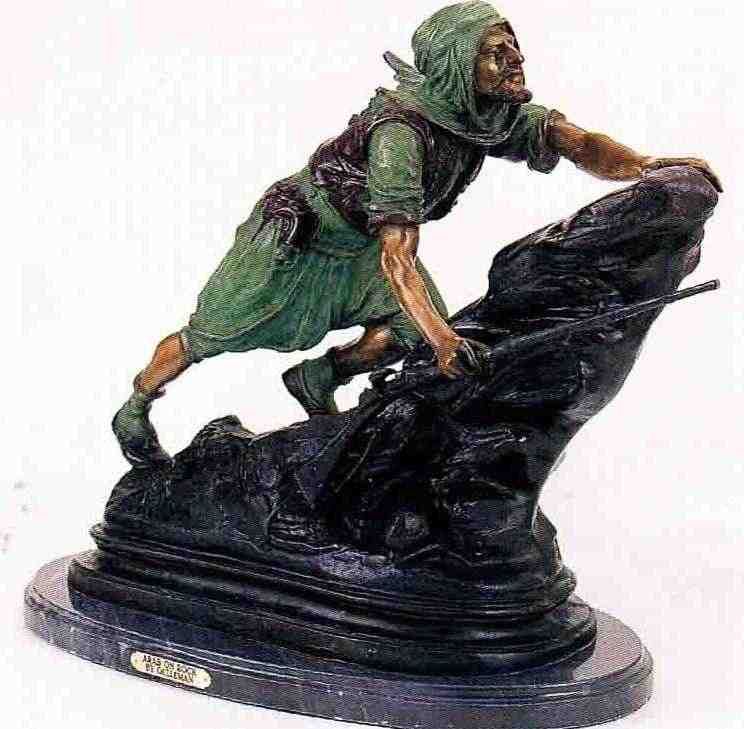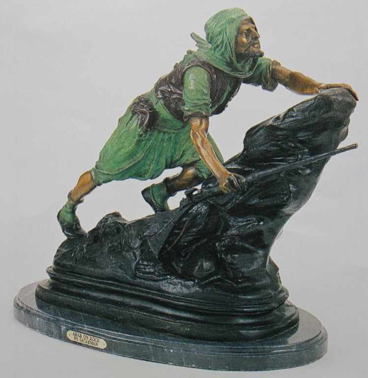 "Arab On Rock" Bronze Sculpture - After Gulleman - Beautiful Color Patina - Mounted On Fine Italian Marble Base - 25"H X 25"W - Signed - Mint Condition -Lost Wax Cast Bronze