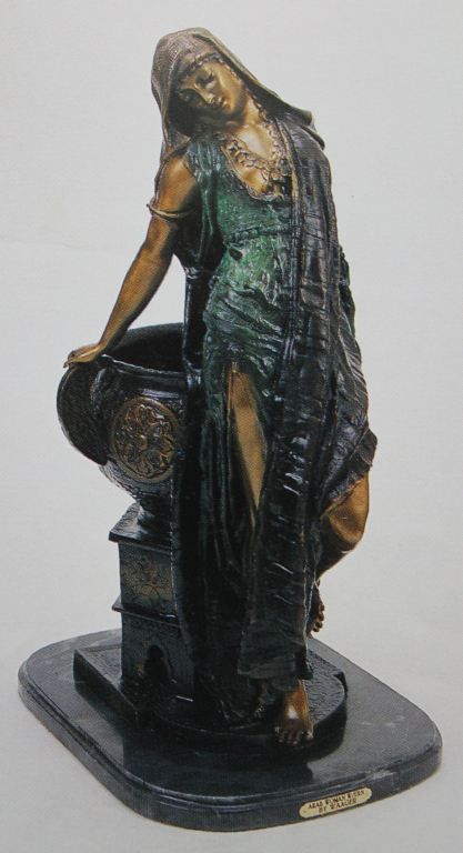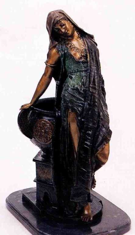 "Arab Woman With Urn" Bronze Sculpture - After Waager - Museum Quality Verdi Finish - Mounted On A Fine Italian Marble Base - Beautifully Detailed - Signed - Mint Condition - 40"H X 20"W - Lost Wax Cast Bronze