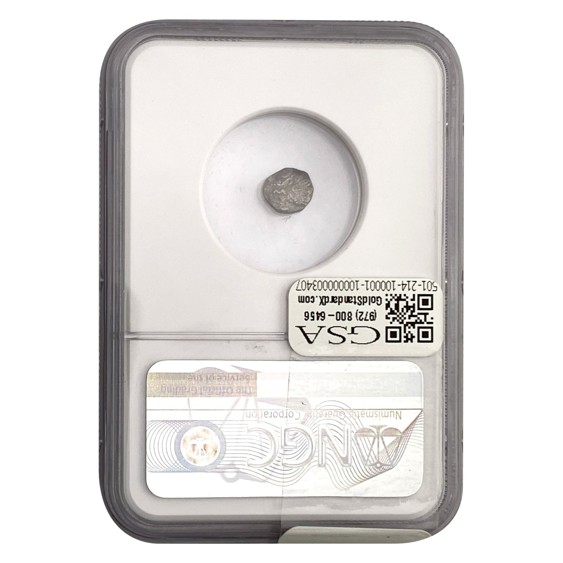 e. Coins sold referencing a third-party grading service are sold “AS IS” without any express or implied warranty, except for a guarantee by GSA that they are genuine. Removal or alteration of the holder, voids all of Bidder’s claims concerning that Product. Certain warranties may be available from the grading services and Bidders are referred to them for further details: Numismatic Guaranty Corporation (NGC), PO Box 4776, Sarasota, FL 34230, www.ngccoin.com/services/writtenguarantee.asp; Professional Coin Grading Services (PCGS), PO Box 9458, Newport Beach, CA 92658, www.pcgs.com/guarantee.html; ANACS, 6555 S. Kenton St., Ste. 303, Englewood, CO 80111; and Independent Coin Grading Co. (ICG), 7901 East Bellview, Ave., Suite 50, Englewood, CO 80111.