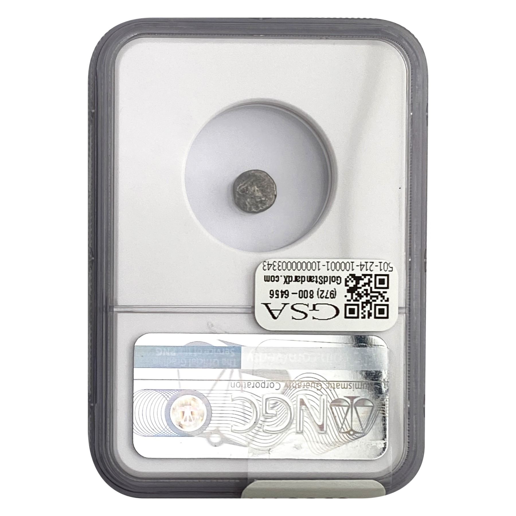e. Coins sold referencing a third-party grading service are sold “AS IS” without any express or implied warranty, except for a guarantee by GSA that they are genuine. Removal or alteration of the holder, voids all of Bidder’s claims concerning that Product. Certain warranties may be available from the grading services and Bidders are referred to them for further details: Numismatic Guaranty Corporation (NGC), PO Box 4776, Sarasota, FL 34230, www.ngccoin.com/services/writtenguarantee.asp; Professional Coin Grading Services (PCGS), PO Box 9458, Newport Beach, CA 92658, www.pcgs.com/guarantee.html; ANACS, 6555 S. Kenton St., Ste. 303, Englewood, CO 80111; and Independent Coin Grading Co. (ICG), 7901 East Bellview, Ave., Suite 50, Englewood, CO 80111.