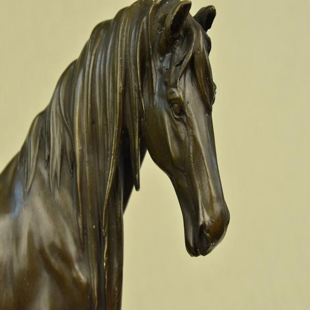 A feral horse stands solemnly in the valley. He is calm. Hair is quite long indicating his untamed state. The body of the horse is lean. This simple sculpture is ideal for equestrian or horse lovers and rests on a marble base and it was crafted using the lost wax method. Bronze Dimensions with Marble Base: Height 16 X Width 18 inches. Weight: 35 LBS.