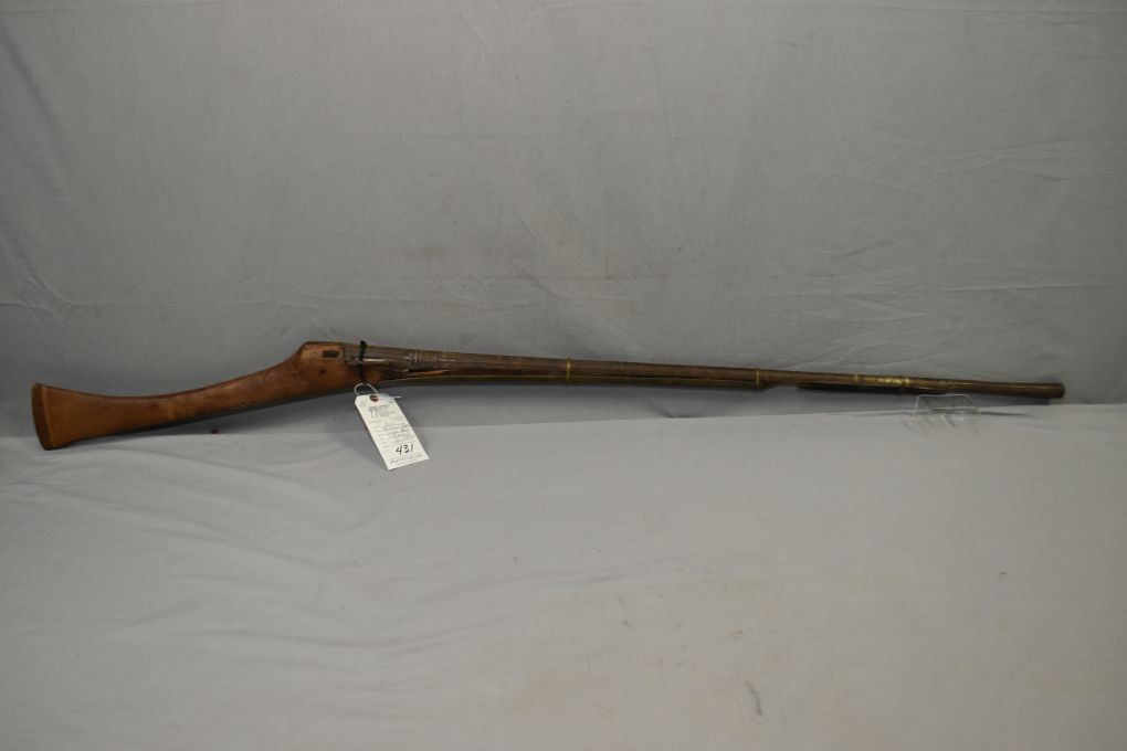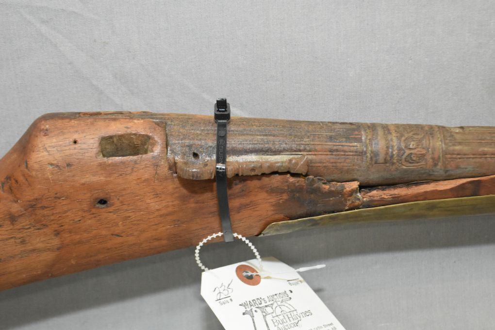 Arabian Matchlock Single Shot .50 Matchlock Cal ? , with approx. 45" bbl [ note stock is cracked and missing pieces, also missing hammer, trigger assembly ] ANTIQUE NO PAL REQ