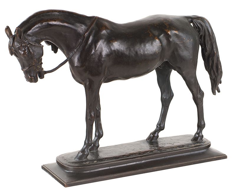 As Proctor became an accomplished equine artist, he was commissioned by a prominent New York attorney to create a sculpture of his Arabian stallion. The prized horse had been bred in the stable of the Czar of Russia and had on his neck the czar’s brand, a crown. The patron was so pleased with the finished sculpture that he allowed the artist to have additional castings made for sale.At the time of the publishing of Proctor’s biography in 2003 there was only one recorded casting. Since then at least three castings of Arabian Stallion have surfaced.