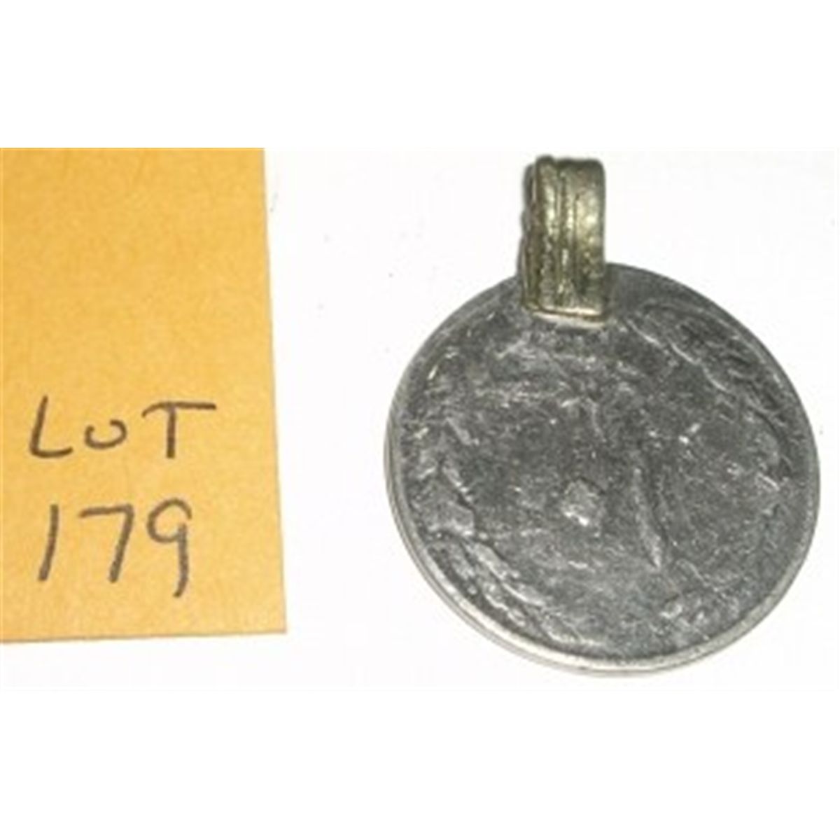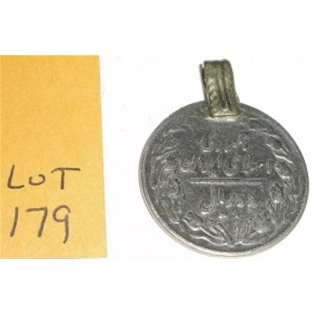 Arabic Coin Pendant with Arabic Writing on it!! Not Sure of Metal Content but Looks Silver. Total Weight of Pendant is 7.17 Grams!! ***Coin, Currency & All Items Listed in this auction - Grades, Conditions and Values are not Safe Deposit Coins LLC Responsibilty. Grades, Condition and Values are determined by Consigner(s) & Buyers ONLY***