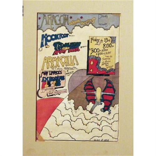 MJP1661 ? Aragon Poster - 11" x 17". Matted. Aragon Proudly Presents Hookfoot, Ted Nugent and the Amboy Dukes, Armadilla and Andy Warhol. Copyright 1973, R. Otis. Horizontal fold across middle of poster. Some tape to the corners.