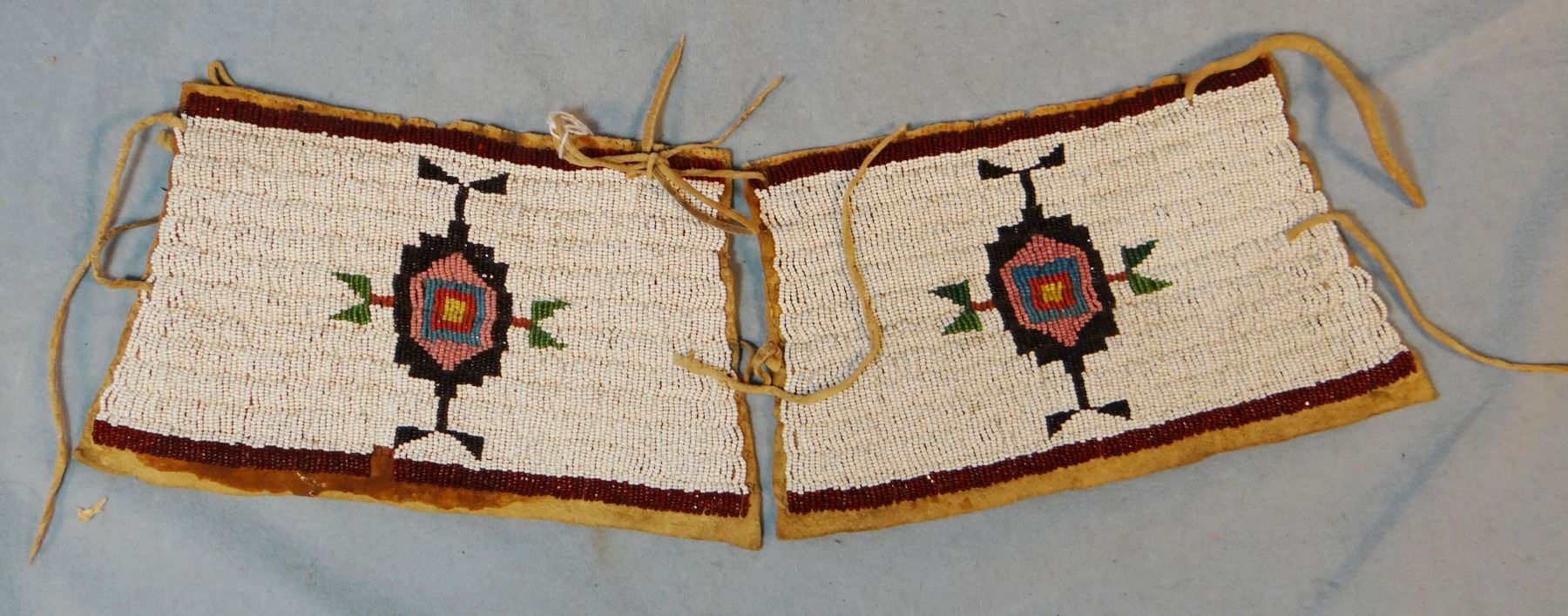 Arapaho full beaded cuffs, sinew sewn, lazy stitched, 9" x 5 «", very nice