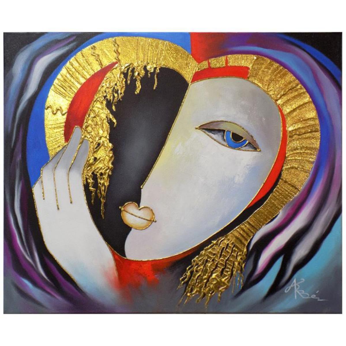 Arbe ,"Sweetheart" Original Mixed Media on Canvas with Gold Embellishing; Hand-Signed with Certifica