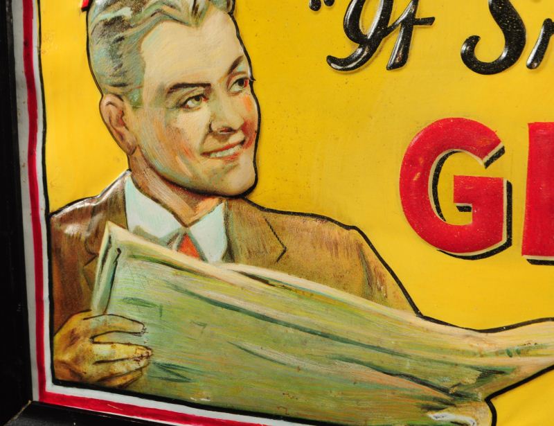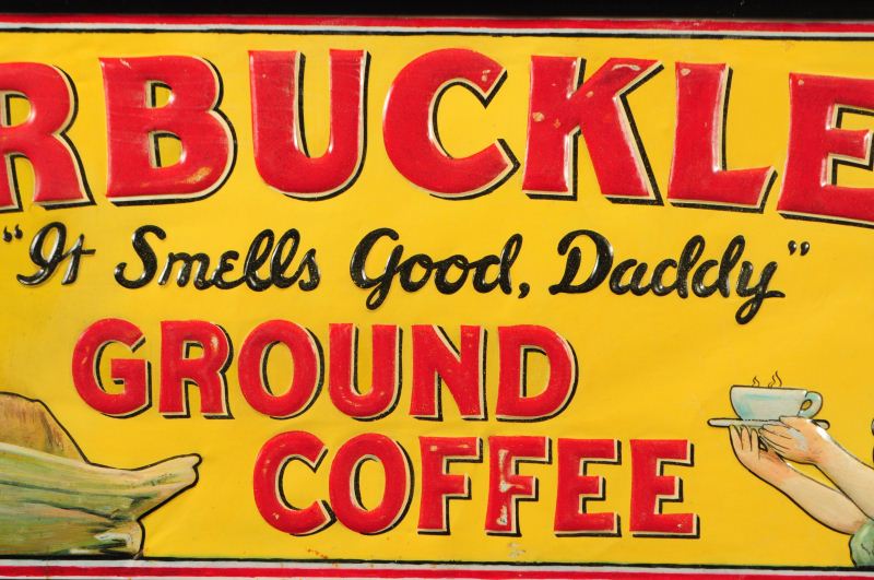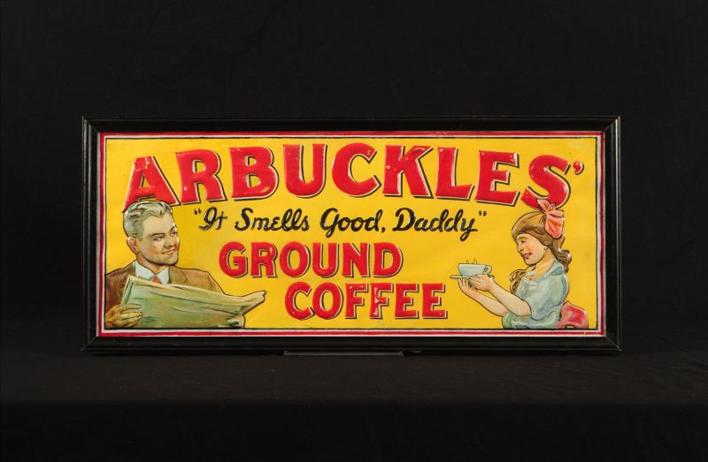 Highly Embossed. In Frame. Was Known As the Coffee of Choice for the American Cowboy. Measures 28-1/2" W x 12-1/2" H.