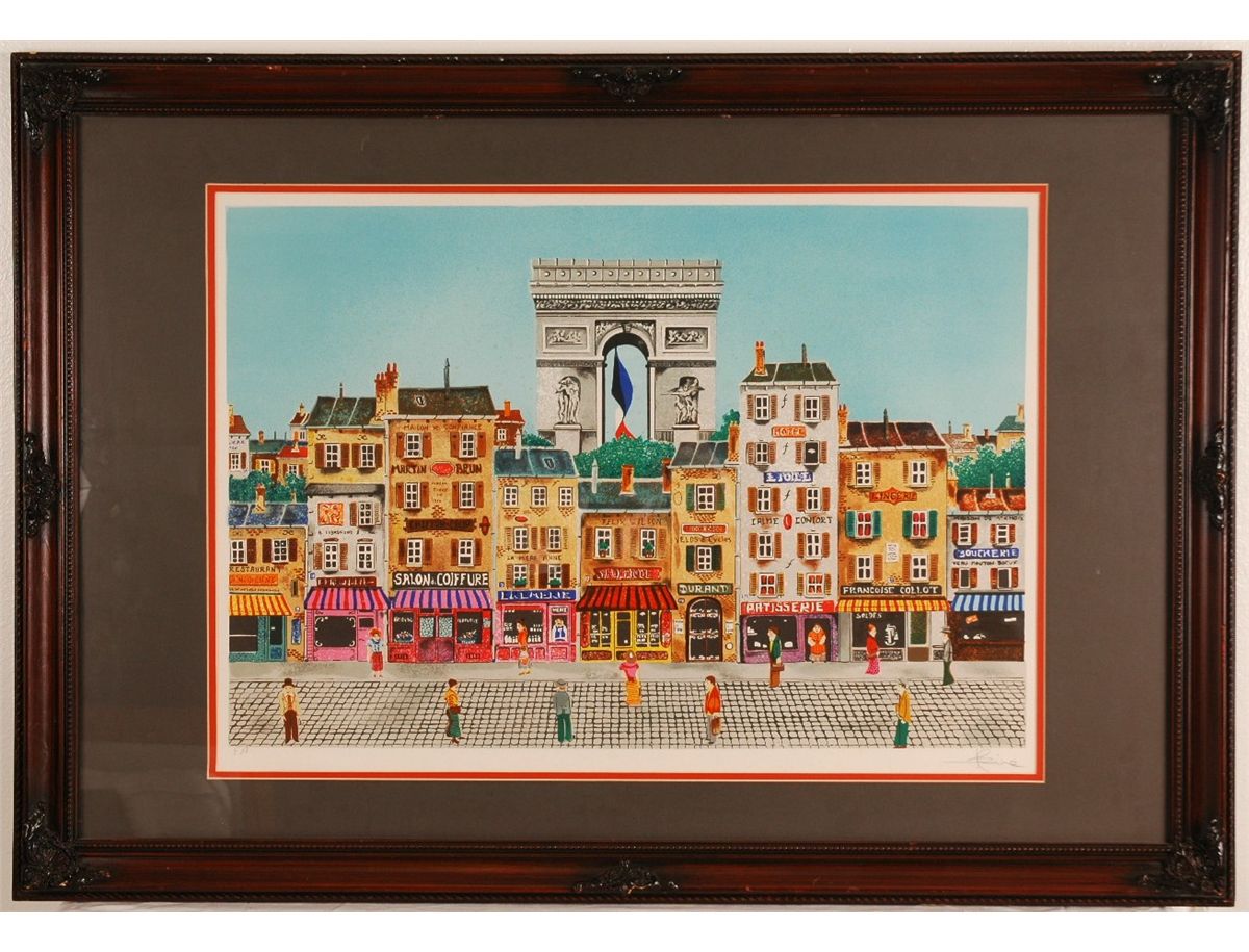 Arc Triomphe Paris Color Lithograph Pencil signed and numbered E.A. Framed 40" x 28"