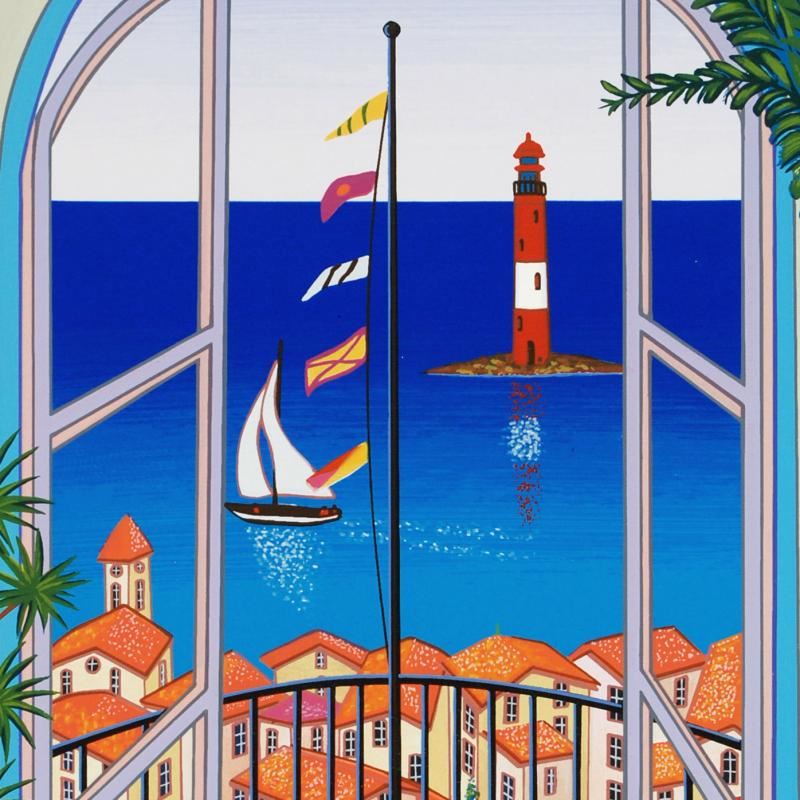 "Arcachon Lighthouse" is a limited edition serigraph on paper, numbered and hand signed by Fanch Ledan. Includes Certificate of Authenticity! Measures approx. 10.5" x 18.5" (with border), 8" x 16" (image).