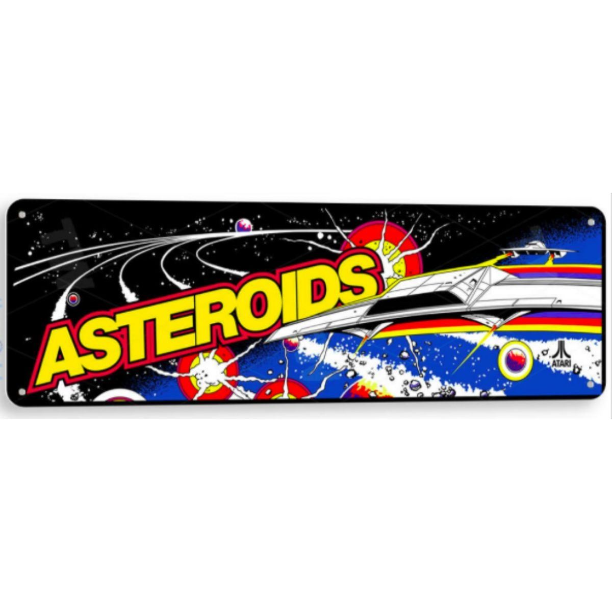 Arcade Game Marquee, Asteroids, metal game room sign, with pre-drilled holes for mounting.  11" W X 4" H.
