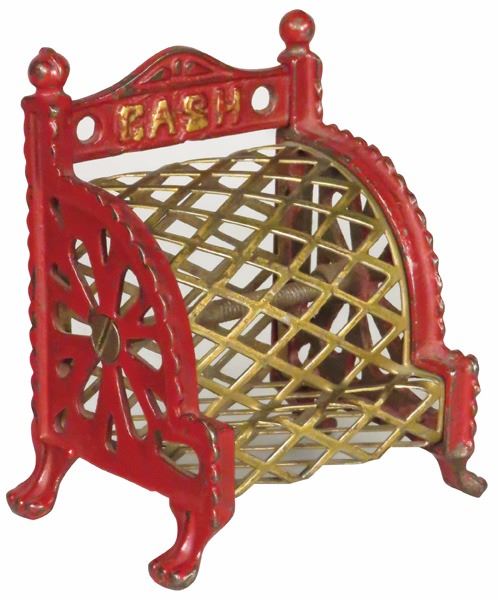 Arcade Mfg. Cast Iron Mesh Cash Register Bank, 1910-25. Most original paint intact. 3 1/4 X 3 3/4 X 2 1/2 inches.