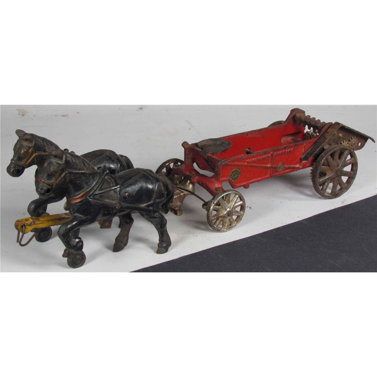 Arcade Toy Co. Cast Iron McCormick Deering Horse Drawn Manure Spreader. Good original condition. 14 inches long.