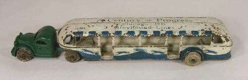 Arcade cast iron (A Century of Progress), Chicago 1934 Greyhound Lines bus,14 1/2 inches long, Fair Cond.