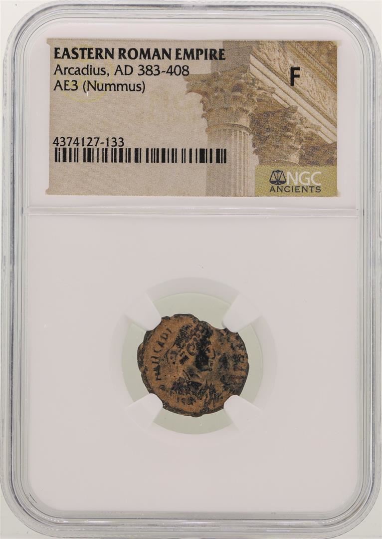 One Arcadius 383-408 AD Ancient Eastern Roman Empire NGC F. NGC Certified.