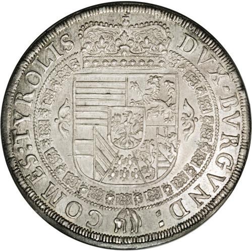 <B>Archduke Leopold Taler 1632 Hall, </B></I>KM629.2 D-3338, sharply struck UNC with medium blue gray toning and just a hint of old cabinet friction on a few high points.