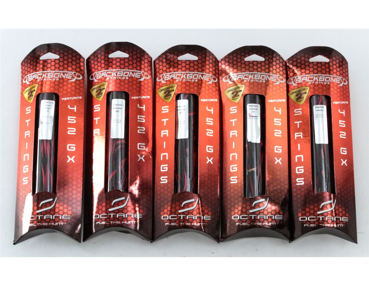 Archery: Five (5) Packages of Octane Backbone Strings, featuring 452 GX. All brand new. Retail @ $500/lot. Est.: $250-$350/lot. (Field Time)