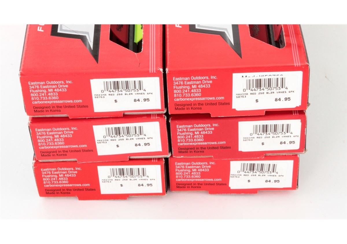 Archery: Six (6) Boxes of Maxima Red 250 Blazer Arrows, each box containing six (6) carbon arrows, all brand new in original packaging. Retail @ $84.95/box. Est.: $250-$350/lot. (Field Time)