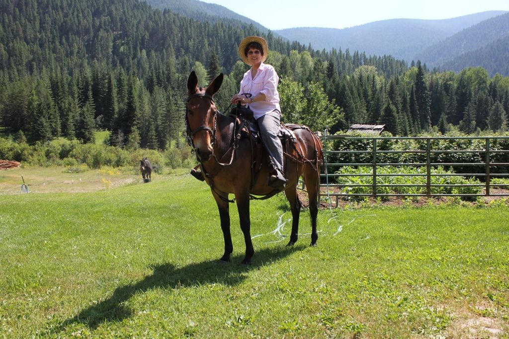 Archie- 15 yrs. Bay john mule 15h2", 1100#, Archie packs and rides, he has been used in the mountians, packed elk and deer, he carries his loads well. He loads, leads, and shoes well.
