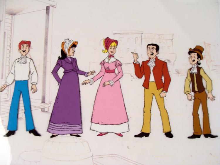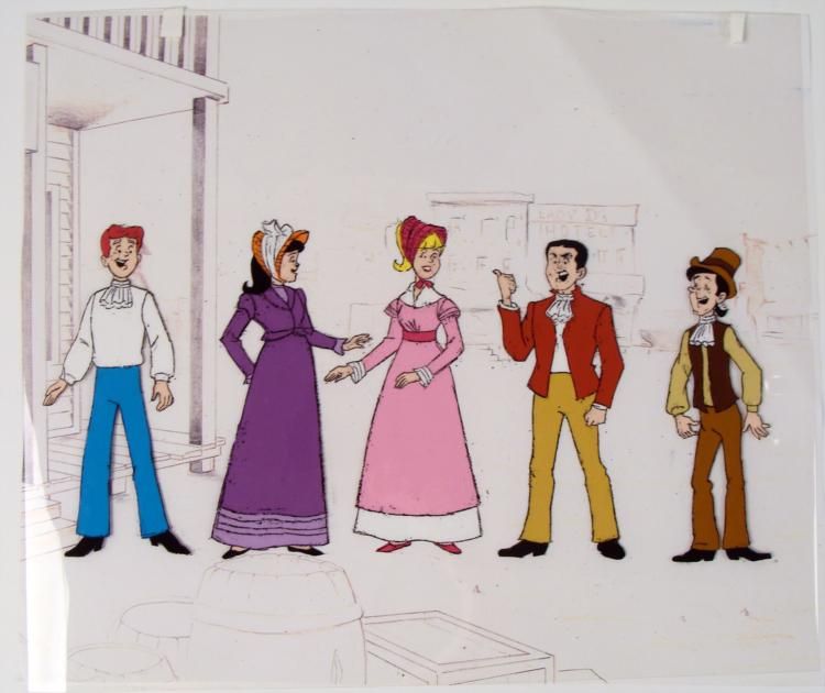 The show revolves around 17-year-old Archie Andrews and his teen-age pals from Riverdale High School including: his best friend, food fiend Jughead Jones; wise-cracking Reggie Mantle; beautiful, spoiled-rich brunette Veronica Lodge; and attractive, blonde, * girl-next-door tomboy Betty Cooper. On the show, the friends appeared as a pop rock band featuring Archie on lead guitar. A typical episode started with the first Archie story, introduced by Archie and occasionally a different character. Next was a "dance * of the week" segment starting with a teaser, then after the commercial break Archie introduced the dance, followed by the song of the week performed by The Archies. After that was a short joke followed by the 2nd Archie story. * * * * Original Pencil Drawing Background and Animated Cel * Overall Size of Background: 10 1/2" x 12 1/2" Overall Size of the Cel: 10 1/2" x 12 1/4" Condition of Background: ExcellentCondition of Cel: Good * * * This is an original pencil drawn set-up was used in the production of an episode of "The Archie Show." Each one-of-a-kind set-up represents a slight change in position of the characters. When individually photographed and projected in rapid succession, the * images appear to move. * * To create production cels, the original animator's drawing is transferred onto an acetate cel (by hand-inking and/or photo copying). The cel is then hand-painted on the reverse side. The background accompanying this cel is an original pencil drawing background. * * * The background and cel are ready to be matted and framed. * * *