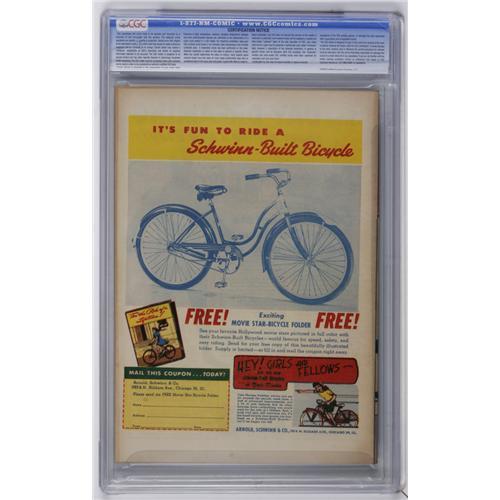 Here's the only copy of the issue graded above VG by CGC to date. This one's from the years before Betty and Veronica had their own series as <B>Archie's Girls</B></I>, but they do have their own backup feature here, drawn by Katy Keene artist Bill Woggon. Al Fagaly drew the cover featuring Miss Lodge in all her glory. Overstreet 2006 FN 6.0 value = $129; VF 8.0 value = $262. CGC census 11/06: 1 in 6.5, none higher. <I>From the Crippen Collection.</B></I><BR><BR><b>Shipping:</b> Slabbed Comic (<a target="_blank" href="http://www.heritageauctions.com/common/shipping.php">view shipping information</a>)