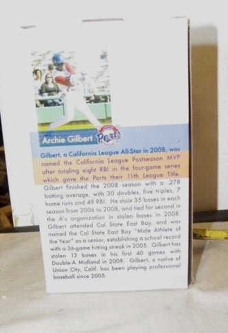 Gilbert, a California League All-Star in 2008, was named the California League Postseason MVP Archie Gilbert Stockton Ports Stadium Giveaway (SGA) Bobble Head doll given out by the Stockton Ports on June 29th,