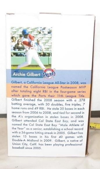 Gilbert, a California League All-Star in 2008, was named the California League Postseason MVP Archie Gilbert Stockton Ports Stadium Giveaway (SGA) Bobble Head doll given out by the Stockton Ports on June 29th,