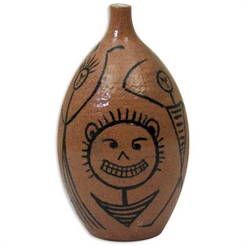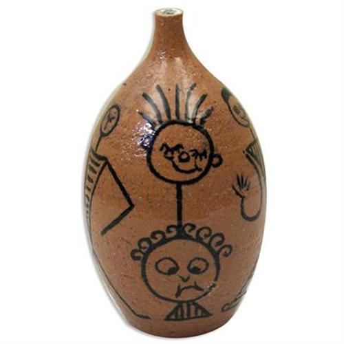 Archie Musick (1902-1978) & Irene Musick, Broadmoor Art Academy, Pottery Vase, Characters on the side represent their friends, Thrown by Irene & Decorated my Archie, 7" tall x 4" wide, unsigned, circa 1940-50s