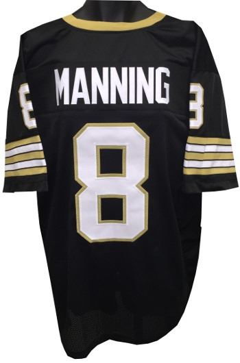 The Mannings are the first family of football. The patriarch is Archie Manning, who made his mark as the quarterback at Ole Miss, where he threw for 4,753 yards and 56 touchdowns. He later spent 13 years in the NFL, playing for the Saints, Oilers and Vikings. This is an Archie Manning New Orleans Saints unsigned Black TB unlicensed custom-prostyle jersey with twill stitched nameplate and numbers. perfect for autograph or to wear! Size XL