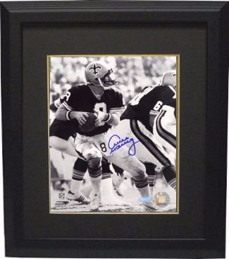 The Mannings are the first family of football. The patriarch is Archie Manning, who made his mark as the quarterback at Ole Miss, where he threw for 4,753 yards and 56 touchdowns. He later spent 13 years in the NFL, playing for the Saints, Oilers and Vikings. Archie Manning has hand signed this 8x10 Vintage B&W photograph of him playing for the New Orleans Saints. A Steiner Sports Hologram and Certificate of Authenticity is included. Custom Black Mat and Premium Black Color Framed as shown.