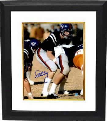 Archie Manning attended the University of Mississippi and was the starting quarterback at Ole Miss for three years. In his college career, he threw for 4,753 yards and 56 touchdowns and ran for 823.5 yards. He scored 14 touchdowns in 1969. In both 1969 and 1970, he was named to the All-SEC team and his #18 jersey was retired by Ole Miss. In 1969, Manning was Mississippi Sportsman of the Year and recipient of the Nashville Banner Trophy as Most Valuable Player in the Southeastern Conference. He was fourth in the Heisman Trophy voting in 1969 and third in 1970. Archie Manning has hand signed this Ole Miss Rebels 8x10 Photo. Steiner Sports Hologram and Certificate of Authenticity. Custom White Mat and Premium Black Color Framed as shown.
