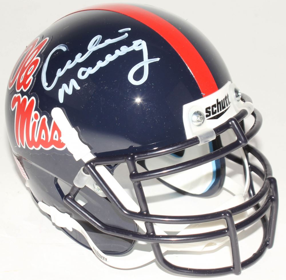 Schutt mini helmet. Hand-signed and inscribed in white paint pen by Archie Manning.Â