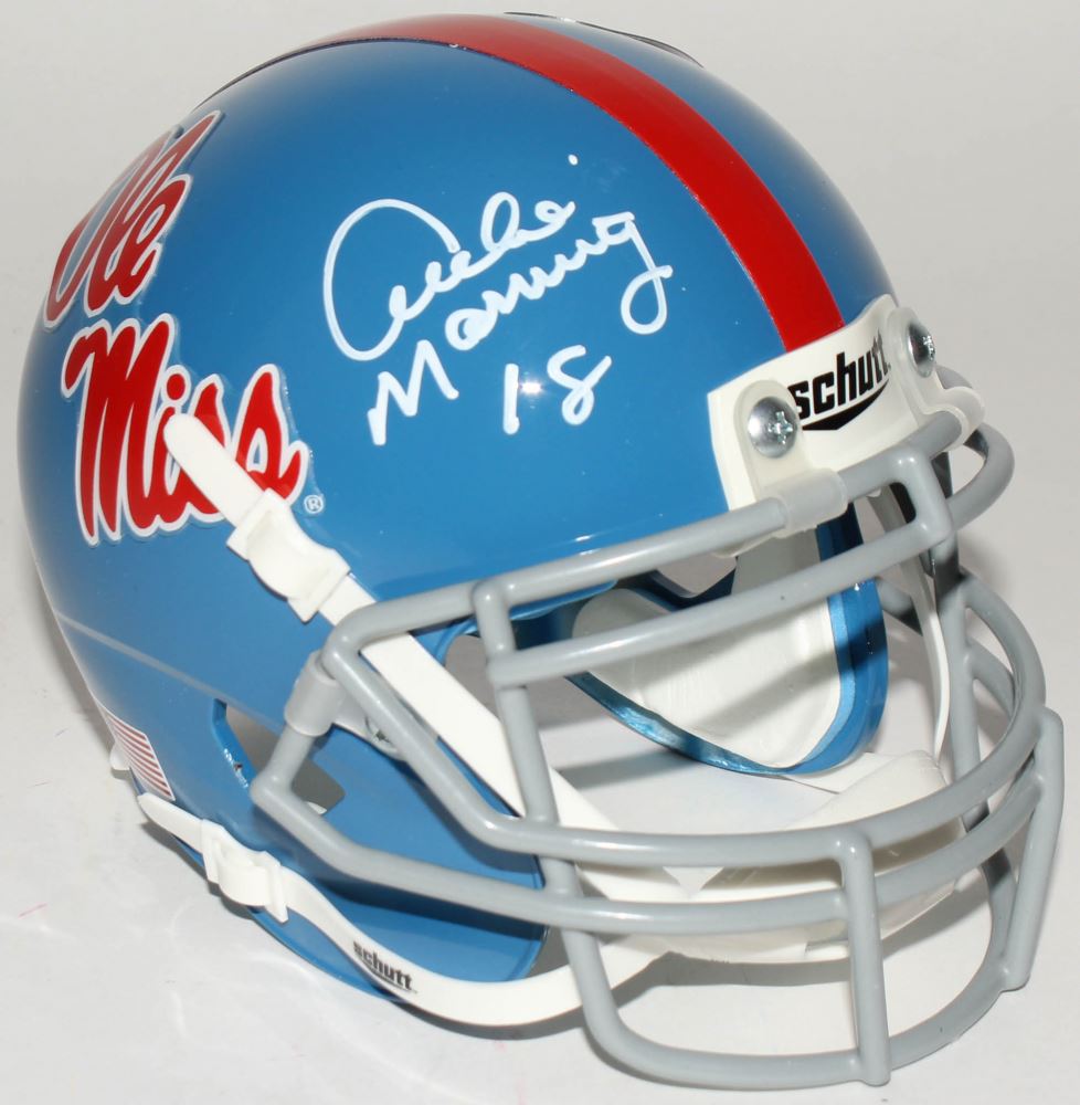 Schutt Ole Miss Rebels mini helmet. Hand-signed in white paint pen by Archie Manning.Â