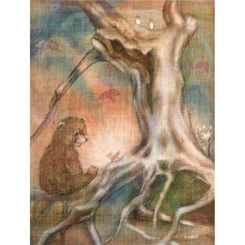 Archie Musick (1902-1978) Broadmoor Art Academy, Oil on Slate, "Bear with Bird", 10" x 8", Signed lower right.