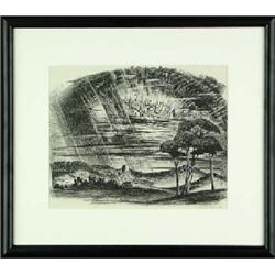 Archie Musick (b.1902-deceased) (Colorado) Lithograph, "City in the Sky," 10.75" x 13.75", pencil signed lower right, Est $300 - $600