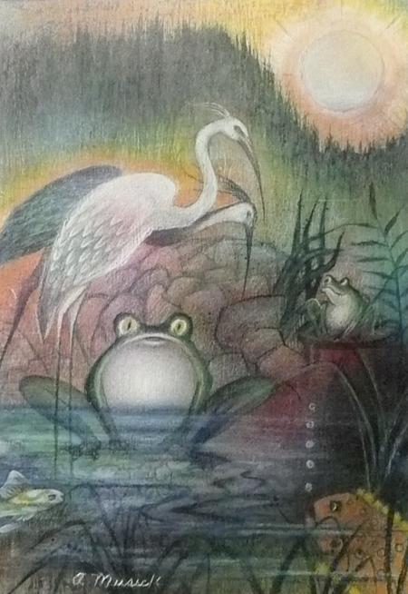 Archie Musick (1902-1978) Tempura on Board "Marsh Fantasy" Signed lower left 14" x 10"
